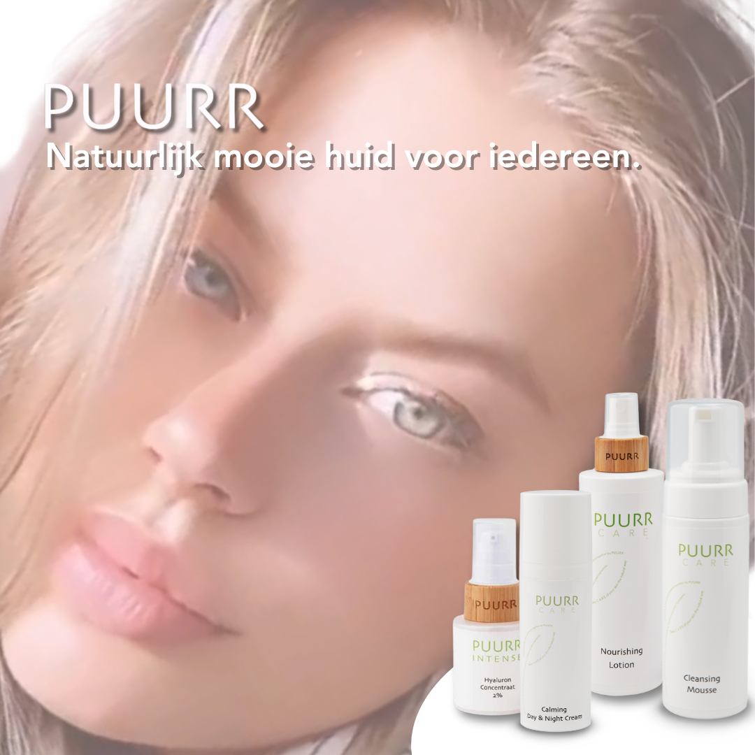 PUURR Skincare is een Nederlandse merk waar wellness en huidverbetering samen komen. Natuurlijke producten die je huid voeden, verzachten en versterken met de kracht van de natuur. Alle producten worden ontwikkeld met zorgvuldig geselecteerde, huidvriendelijke ingrediënten en zijn vrij van parabenen, minerale oliën, sulfaten, siliconen en andere belastende stoffen. De producten zijn zacht voor de huid, krachtig in werking en geschikt voor iedere huid. PUURR gelooft in transparantie, kwaliteit en eenvoud: geen poespas, maar effectieve verzorging die de huid respecteert en ondersteunt, voor een gezonde, stralende huid.